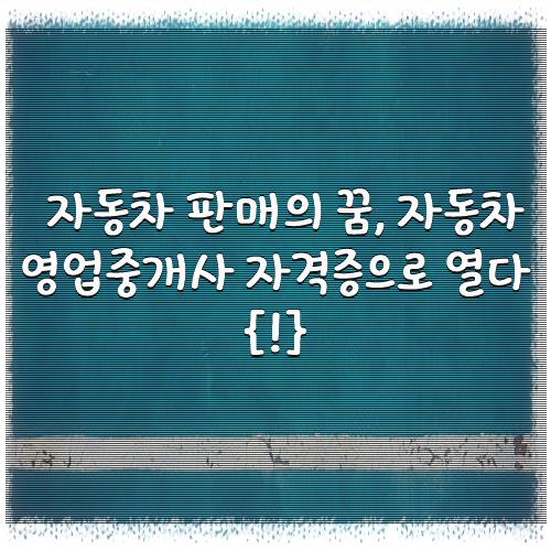알아보자 :: 자동차 판매의 꿈, 자동차영업중개사 자격증으로 열다!