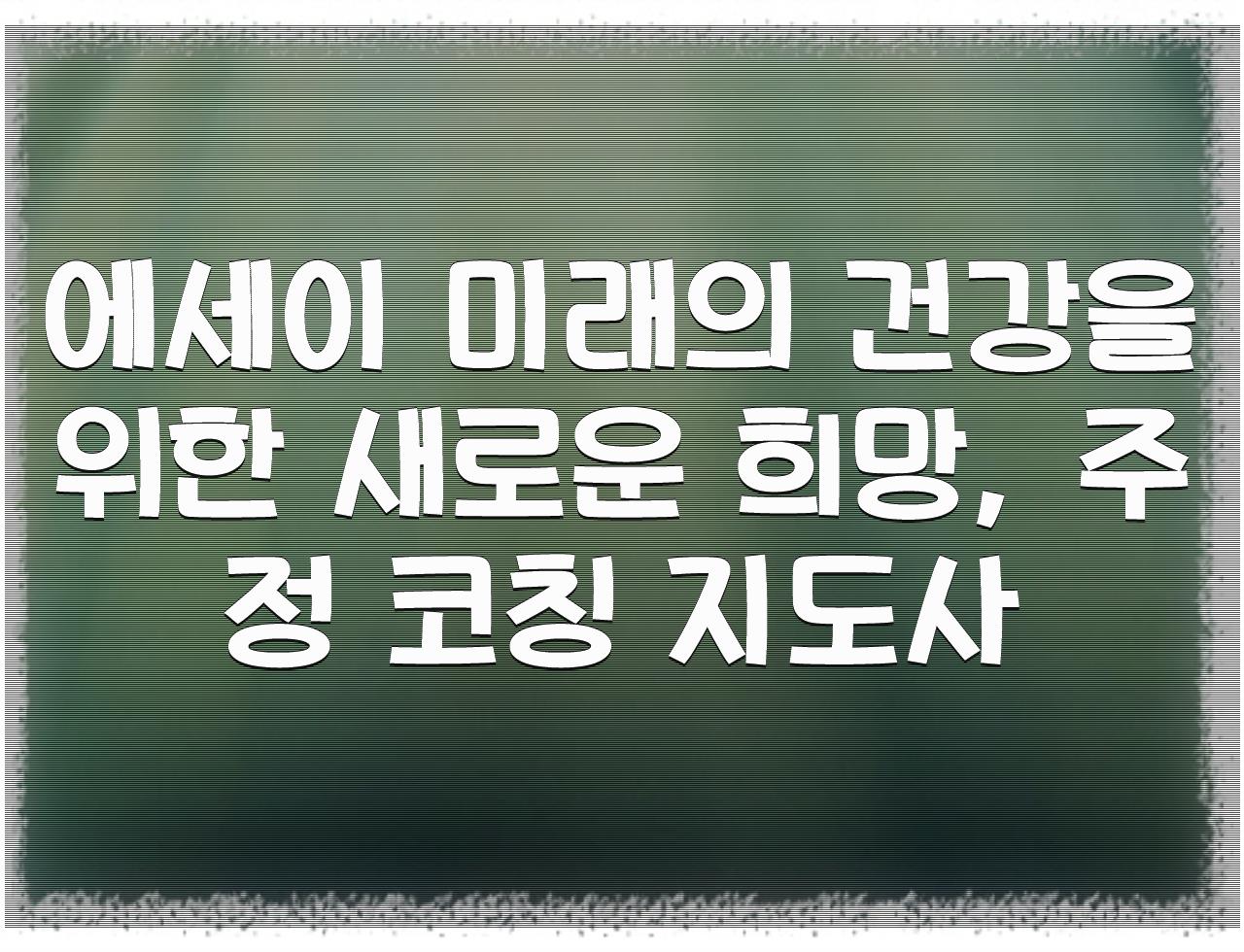 에세이 미래의 건강을 위한 새로운 희망, 주정 코칭 지도사 관련내용 확인 해 보시겠습니다.