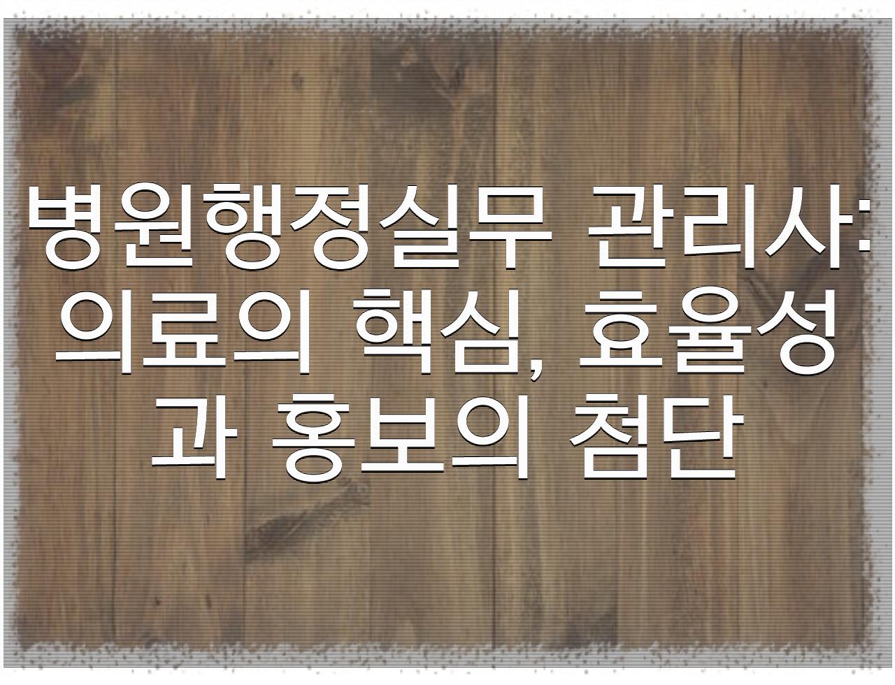 병원행정실무 관리사: 의료의 핵심, 효율성과 홍보의 첨단