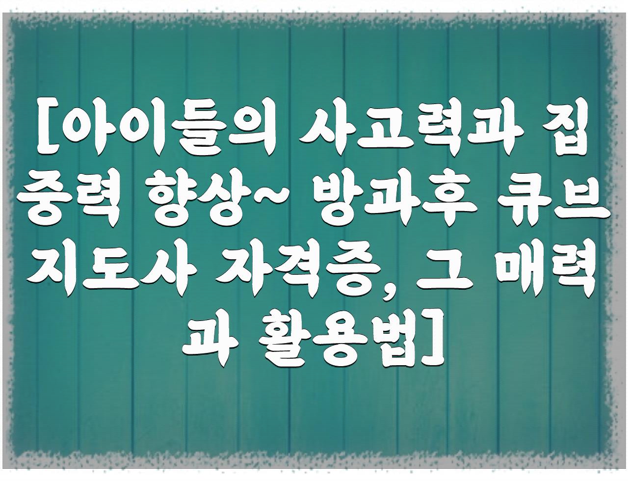 [아이들의 사고력과 집중력 향상~ 방과후 큐브 지도사 자격증, 그 매력과 활용법] 관련내용 확인 해 보시겠습니다.