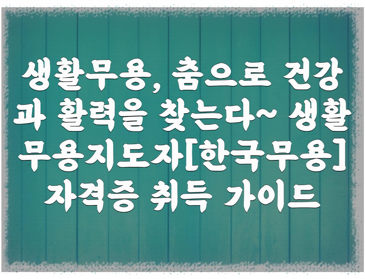 생활무용, 춤으로 건강과 활력을 찾는다~ 생활무용지도자[한국무용] 자격증 취득 가이드 관련내용 확인 해 보시겠습니다.