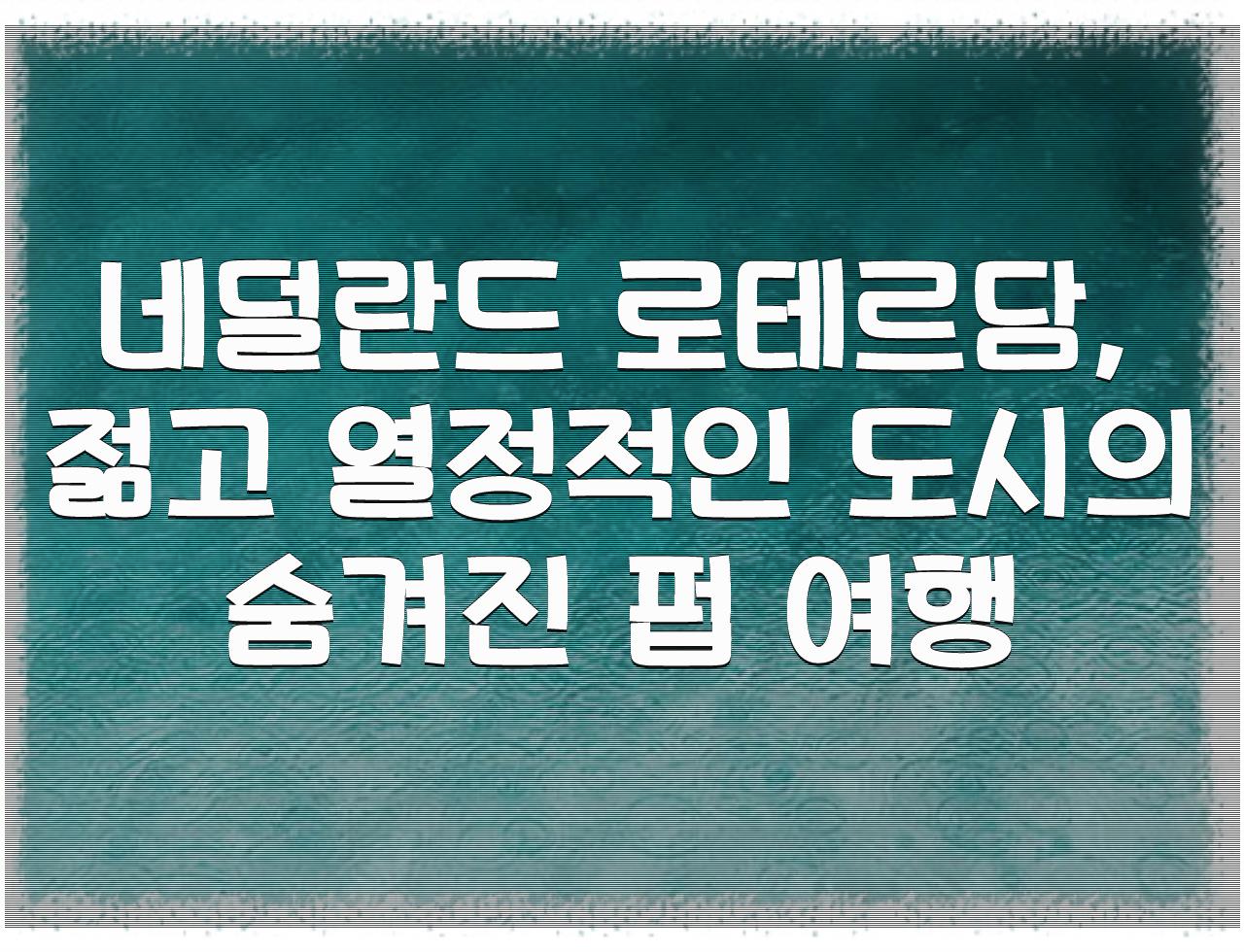 어두운 골목길, 낡은 벽돌 건물, 희미하게 새어 나오는 맥주 향기... 여행 중 가장 매력적인 순간 중 하나는 바로 현지 분위기를 느낄 수 있는 펍에서 한 잔의 맥주를 즐기는 것입니다. 특히 네덜란드 로테르담은 독특한 건축 양식과 다양한 문화가 공존하는 젊고 열정적인 도시입니다. 이 글에서는 로테르담 여행 중 꼭 방문해야 할 숨겨진 펍 3곳을 소개하며, 저만의 특별한 경험과 추천을 다 함께 나누고자 해요. 자~ 그럼, 네덜란드 로테르담, 젊고 열정적인 도시의 숨겨진 펍 여행 써머리 합니다.