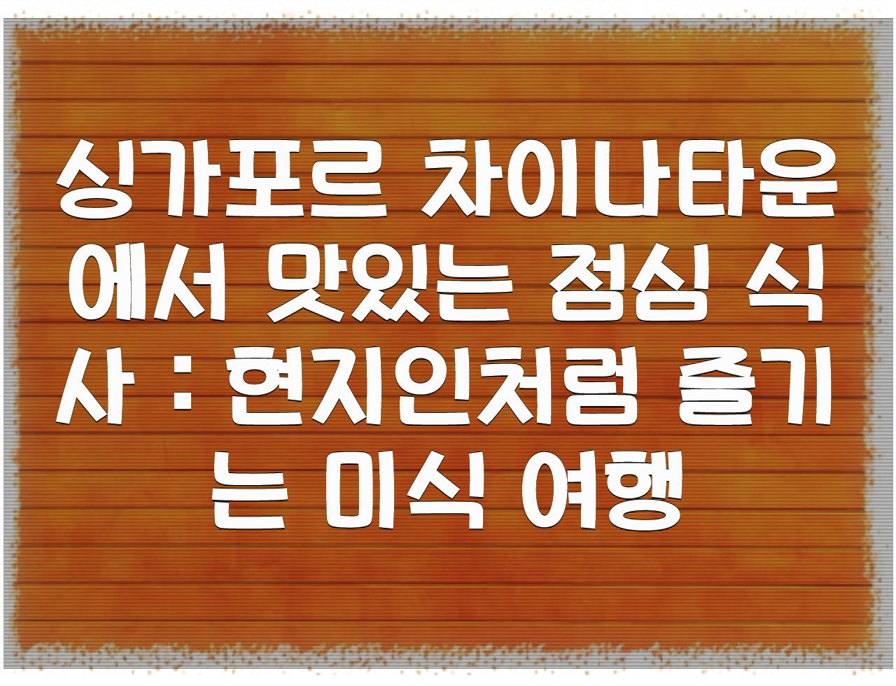 향긋한 향기가 인사하는 곳, 싱가포르 차이나타운의 맛집 탐방 본격적으로 싱가포르 차이나타운에서 맛있는 점심 식사 : 현지인처럼 즐기는 미식 여행 관련 핵심이니 참고 해보세요.