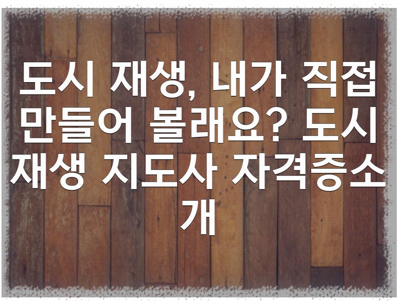 도시 재생 내가 직접 만들어 볼래요 도시재생 지도사 자격증소개