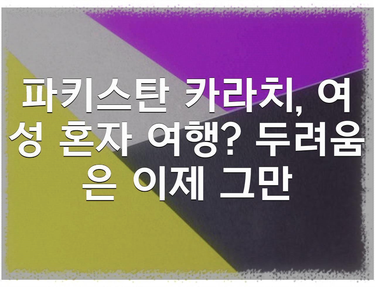 파키스탄 카라치 여성 혼자 여행 두려움은 이제 그만