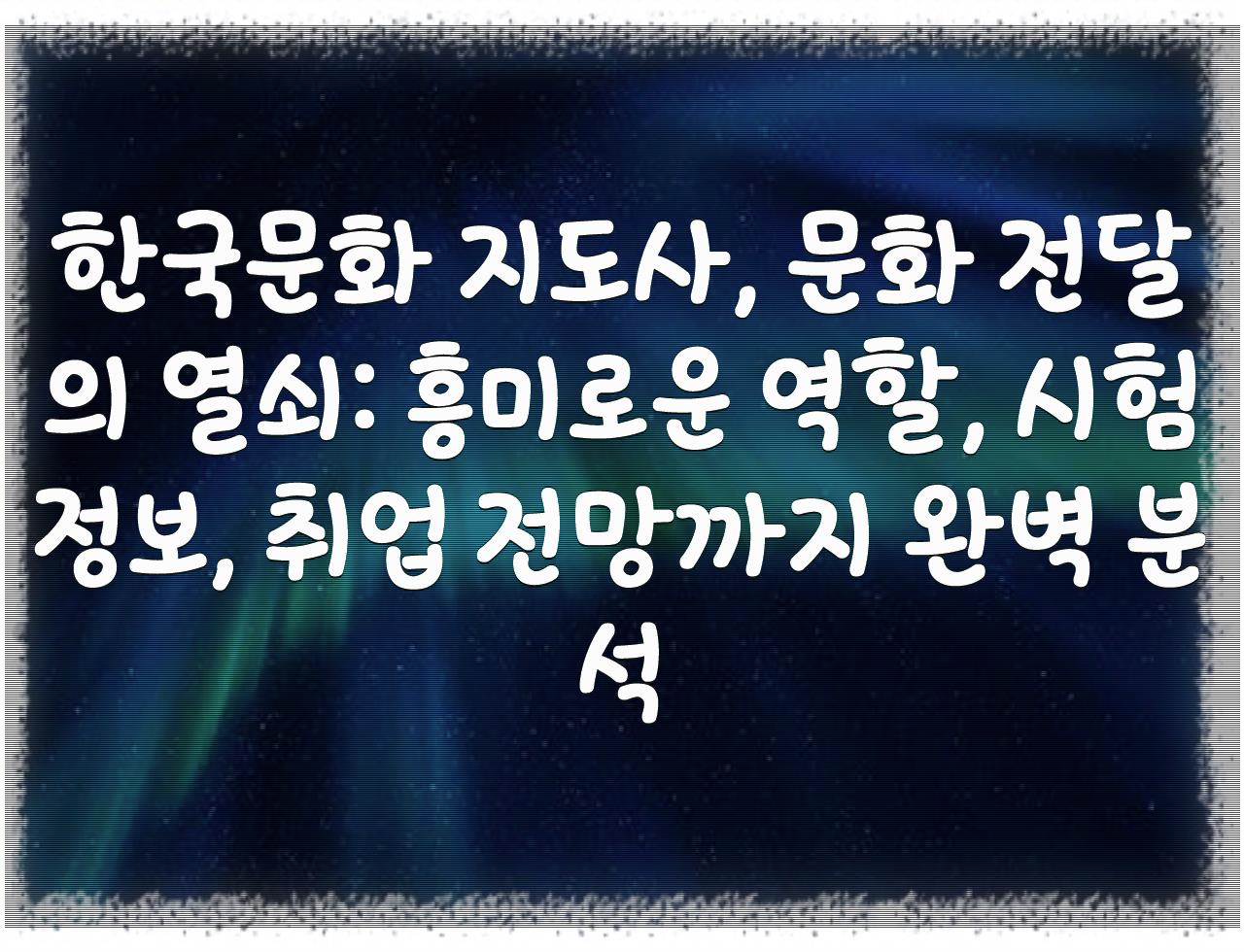 정리드린 내용은 한국문화 지도사, 문화 전달의 열쇠: 흥미로운 역할, 시험 정보, 취업 전망까지 완벽 분석 관련입니다. 이해에 도움이 되셨길...
